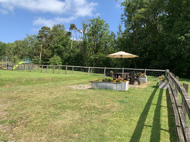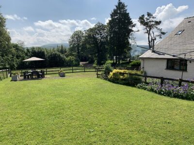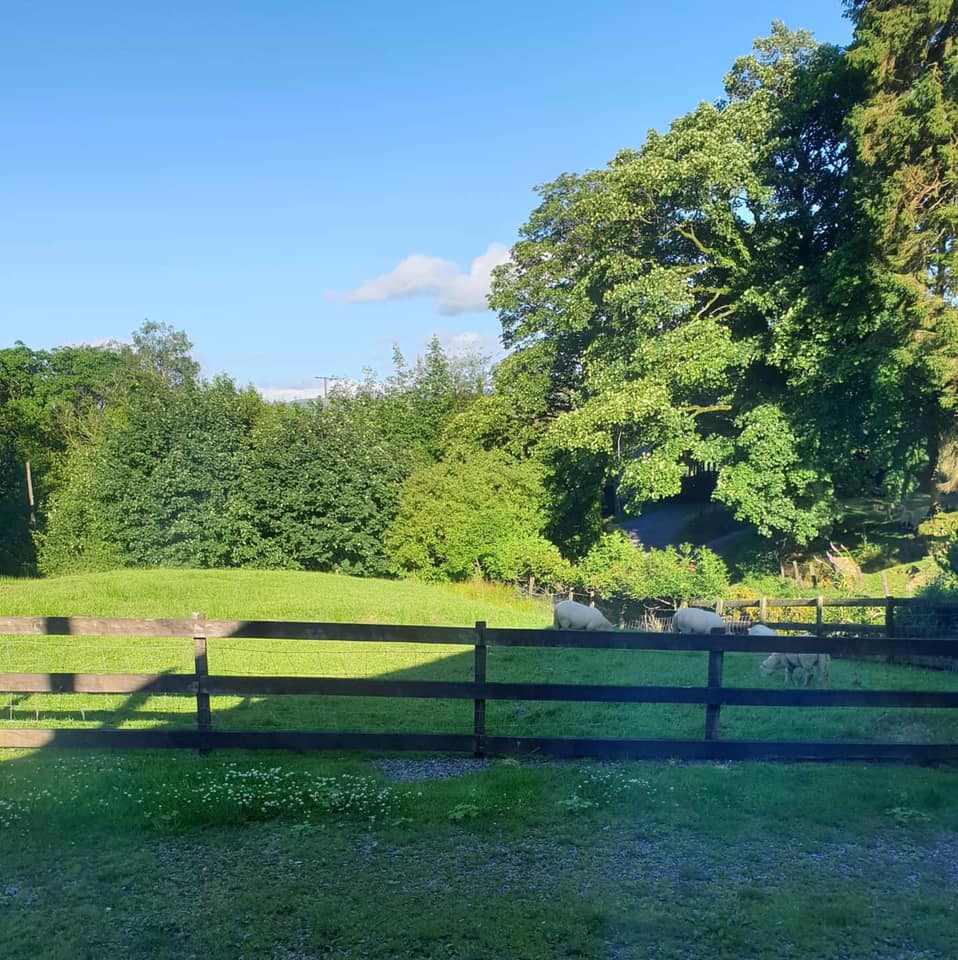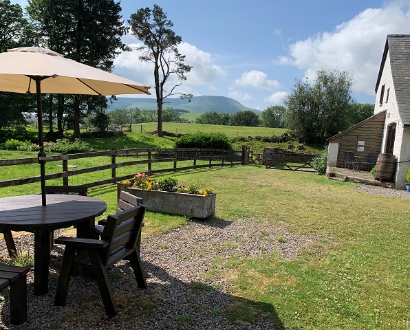 Outside there is a seating area with large table and chairs made from recycled farm plastics and panoramic views across to Fan Gyhirych. Ample lawns with adjacent play area and gateway leading to the campfire site.