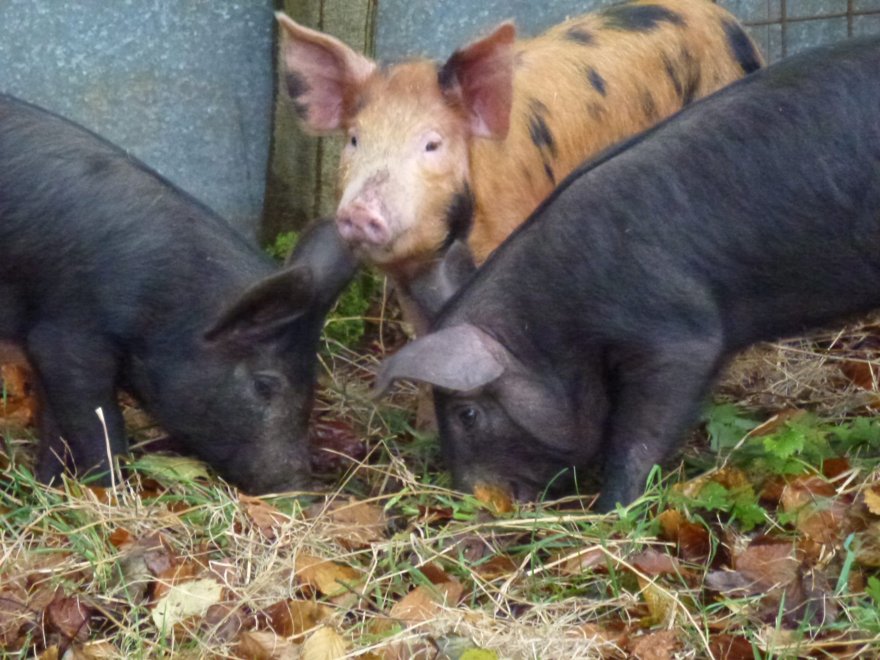 We usually have a couple or friendly rare breed pigs wondering around the woods, who welcome your vegetable peelings.